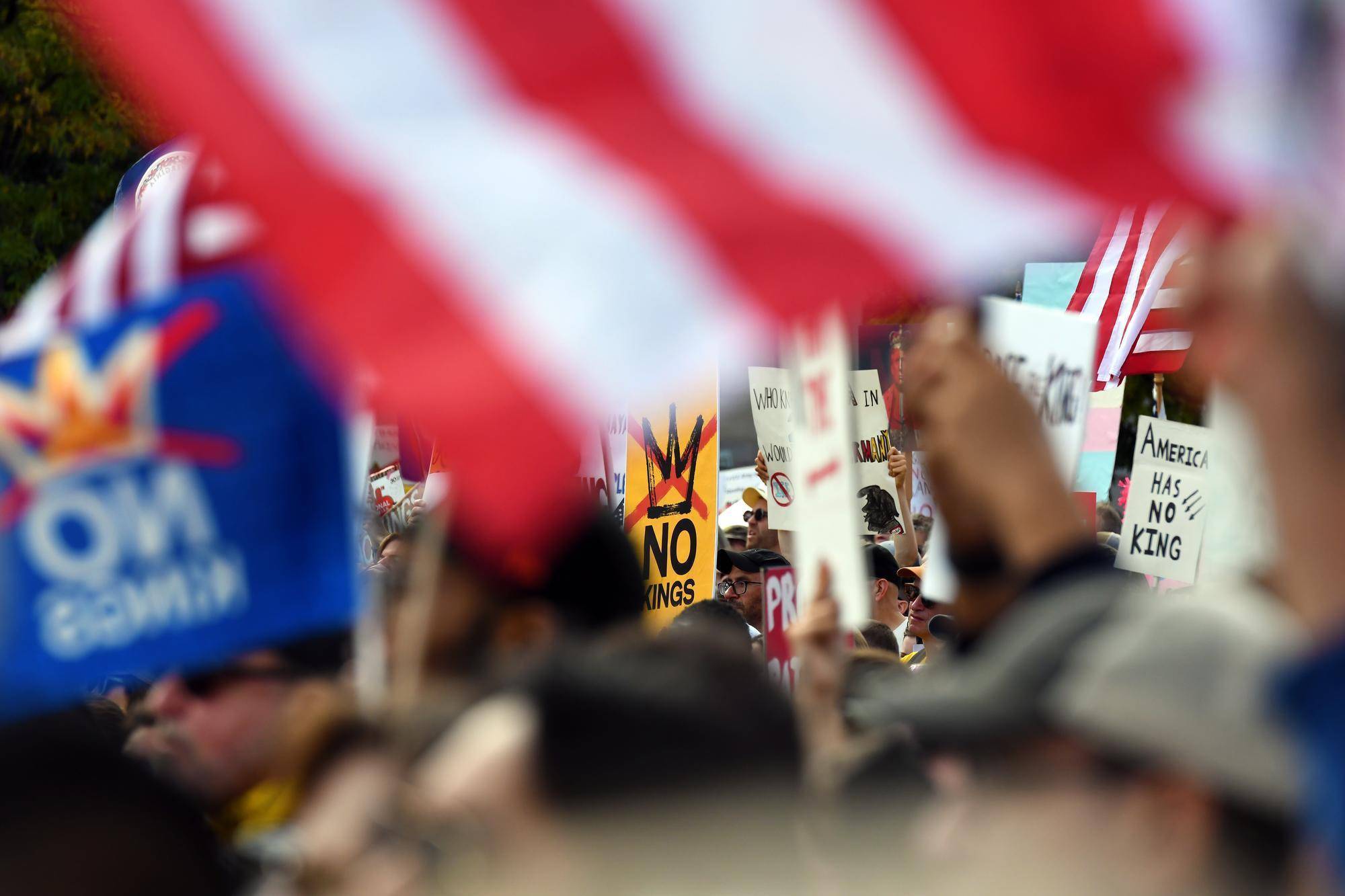 10月18日,在美国华盛顿,人们参加示威游行活动。包括纽约、洛杉矶、华盛顿、芝加哥等主要城市在内的美国多地当日举行示威游行,反对暴力打击移民、强行派遣国民警卫队进入美国城市、加征关税等多项特朗普政府执行的政策。新华社记者李睿摄分析人士指出,打击犯罪可能是特朗普政府处理最好的议题,也比处理通货膨胀、对外贸易、国际关系容易得多。美联社指出,特朗普打击犯罪的工作帮助其提升了整体支持率。