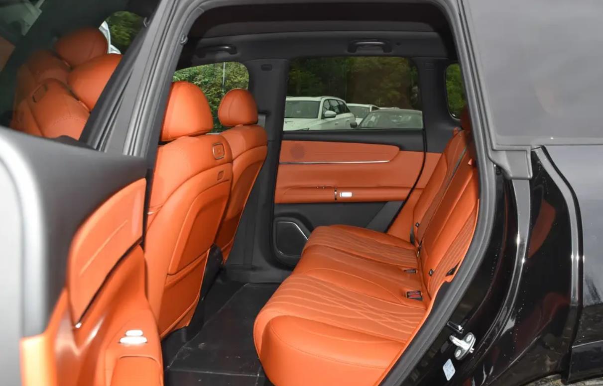 那它的车头整体上偏高,所以侧面轮廓就可以带来高大威猛的既视感,站在旁边也是气场十足。而且它车门也保留内凹设计,有点像美系车那样,营造出的肌肉感十足。轮毂造比较常见,但尺寸却给到19英寸,配合上隐藏式门把手和后排隐藏车窗,第一眼视觉感受很霸气,特别适合男人开。尾部的翼子板和C柱的风格都使用黑化设计,因此可以带来无边界的表现,从而视觉上带来更修长的感受,也为C柱增加一些神秘感。它的尾部很宽所以车尾视觉感觉很不错,贯穿式的尾灯也采用C型造型,内部线条灯组勾勒,加上黑色元素后也是显得十分运动。下包围也加入镀铬装饰,整个尾部的气场也能呼应车头的设计。在尺寸上也是有优势的,长宽高为4837*1920*1690毫米,轴距为2905毫米,空间属于旗舰级标准了。
