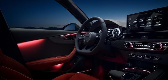 在外观设计上,一汽奥迪A4L将赛道基因与豪华气质完美融合。标志性的渐进式菱形日间行车灯、熏黑效果矩阵式LED大灯以及动态流水光效,赋予了车辆极高的辨识度。车身颜色方面,纳多灰与阿拉斯红内饰的组合,更是将个性与豪华演绎得淋漓尽致。值得一提的是,一汽奥迪A4L全系标配的矩阵式 LED 大灯,更是同级唯一搭载该配置的车型,其可根据路况智能调节光型,在保证照明效果的同时避免对对向车辆造成干扰,彰显了奥迪在灯光技术上的传统优势。